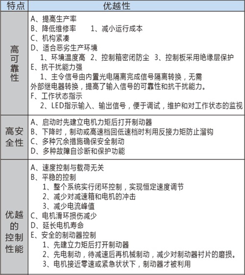 GVDJ起重機(jī)調(diào)壓調(diào)速控制器是根據(jù)起重機(jī)運(yùn)行特點(diǎn)而開發(fā)的專業(yè)調(diào)速產(chǎn)品,該產(chǎn)品是從GVDJ-II調(diào)速控制器的基礎(chǔ)上開發(fā)的,屬我公司第四代調(diào)速產(chǎn)品,具有完全獨(dú)立的自主知識(shí)產(chǎn)權(quán)。新一代的GVDJ控制器采用了先進(jìn)的DSP技術(shù),主要技術(shù)指標(biāo)達(dá)到國際先進(jìn)水平。GVDJ在轉(zhuǎn)子反饋的基礎(chǔ)上增加了編碼器反饋的功能,使調(diào)速精度更準(zhǔn)確;當(dāng)主令回零,新增加的抱閘失靈保護(hù)能自動(dòng)檢測(cè)機(jī)械抱閘,使重物不會(huì)下滑;使用將更加方便合理,特別適用于重級(jí)工作制且處于惡劣環(huán)境中的起重機(jī)的驅(qū)動(dòng)和控制。
