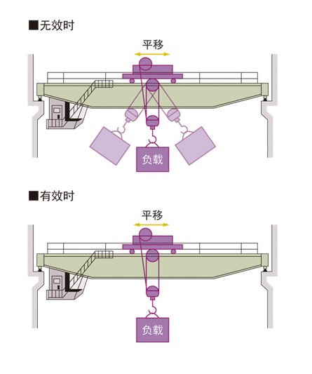 內(nèi)置了防搖擺功能, 可抑制平移時(shí)貨物的晃動(dòng)。 由于負(fù)載不會(huì)晃動(dòng), 可更快地放下,因此有利于縮短運(yùn)行周期。